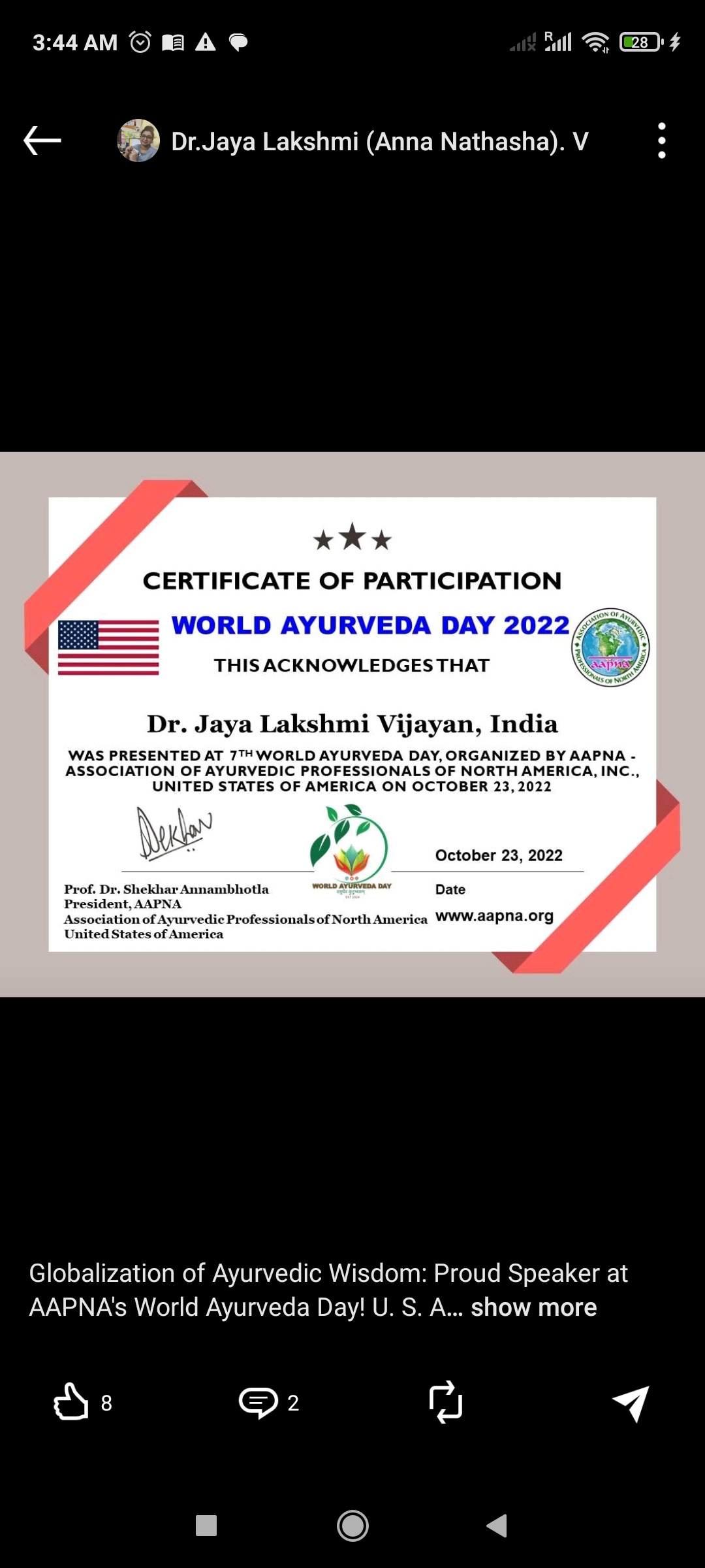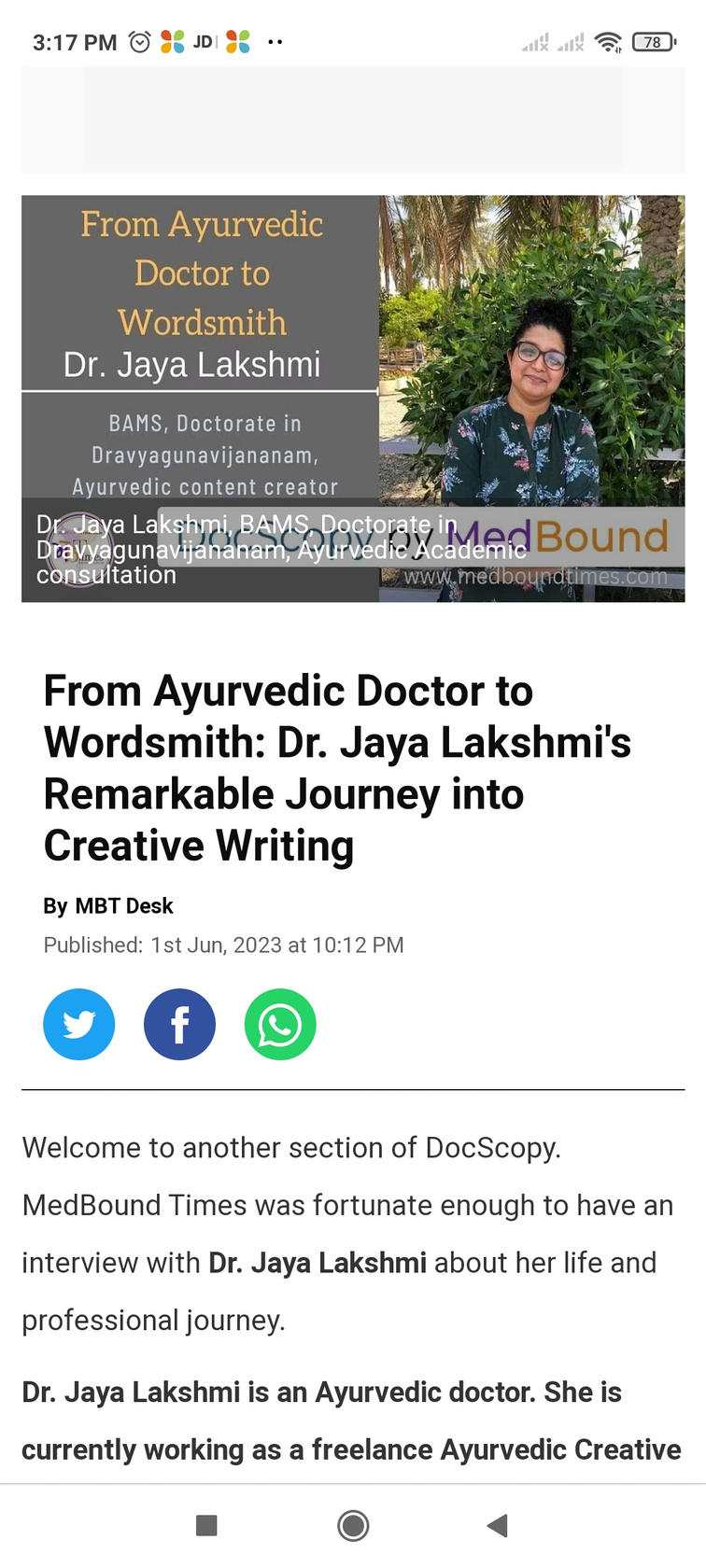 🔸BAMS -Bachelor of Ayurvedic Medicine and Surgery (2002-2008)🔸M. D -Doctor of Medicine (2009-2013)-Dravyagunavinjana (Medicinal plants and Drugs + Preventive Ayurveda )